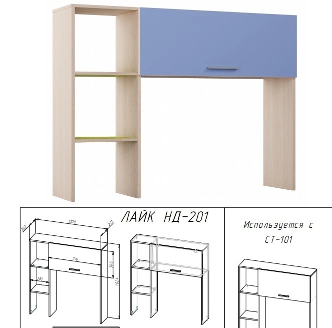- Надстройка: Длина 1100 мм x Глубина 221 мм х Высота 1024 мм