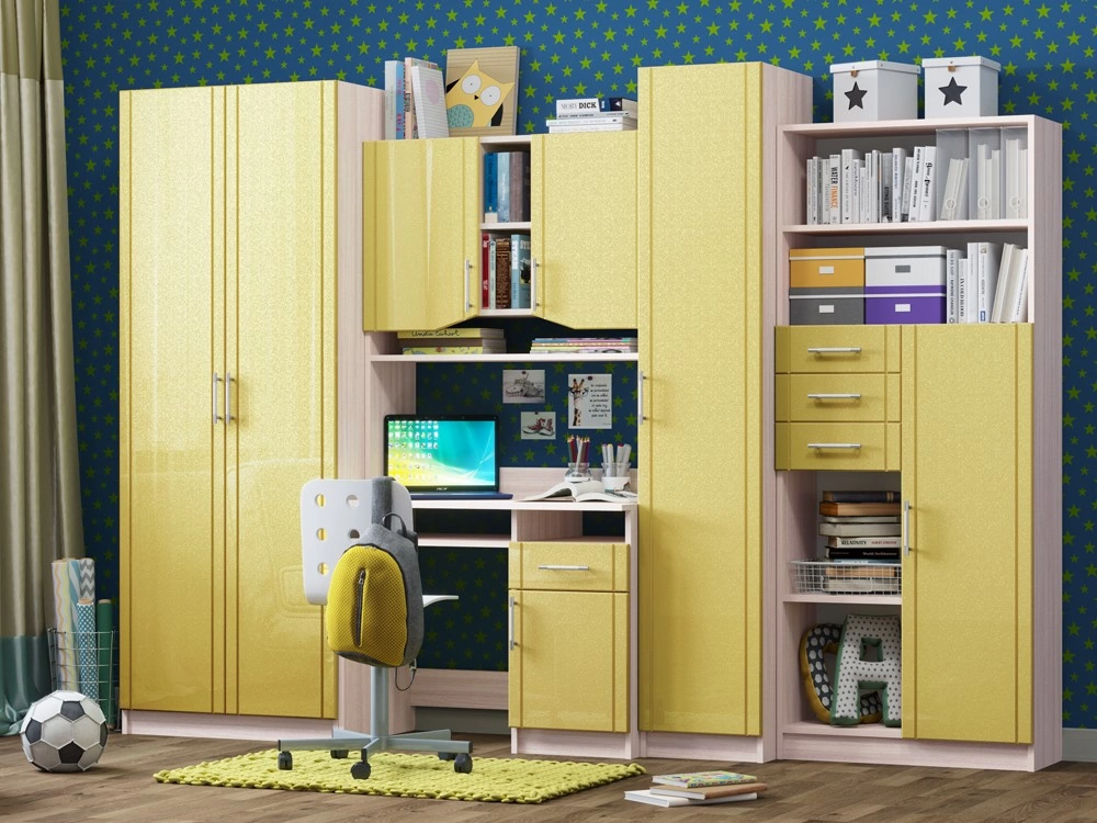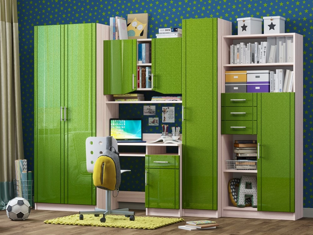 Детская Юниор МДФ – практичный и экономный вариант. Подойдет, как и для подростка, так и для маленьких хозяев комнаты. Вместительные отделения шкафа и большое количество ящиков помогут поддерживать порядок в комнате. Внутри шкаф оснащен штангой для плечиков и огромным количеством полок, что позволит поместить большое количество одежды.