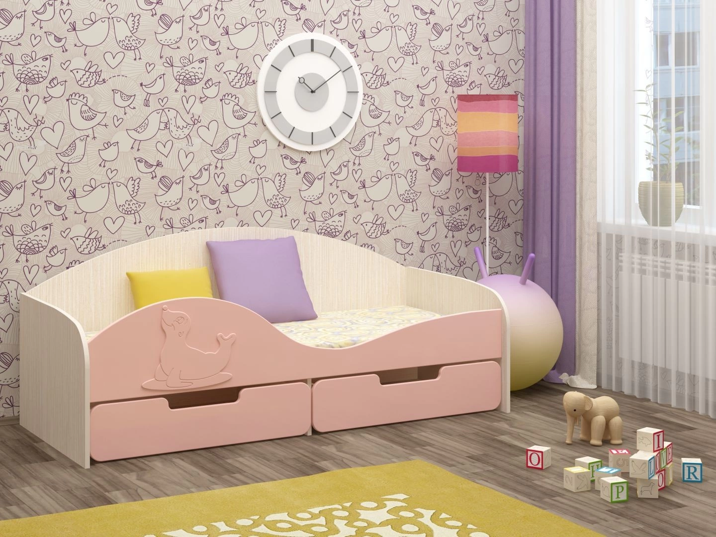 Кровать "Юнга-8" МДФ - превосходный выбор для детской комнаты вашего ребенка. Кровать оснащена бортиком с накладкой в виде милого тюленя, который защищает вашего ребенка от возможного падения во сне. Снизу кроватки находятся два выдвижных ящика, в которых удобно хранить детские игрушки, одежду или белье. Эта оригинальная кроватка поразит Вас своим милым дизайном.