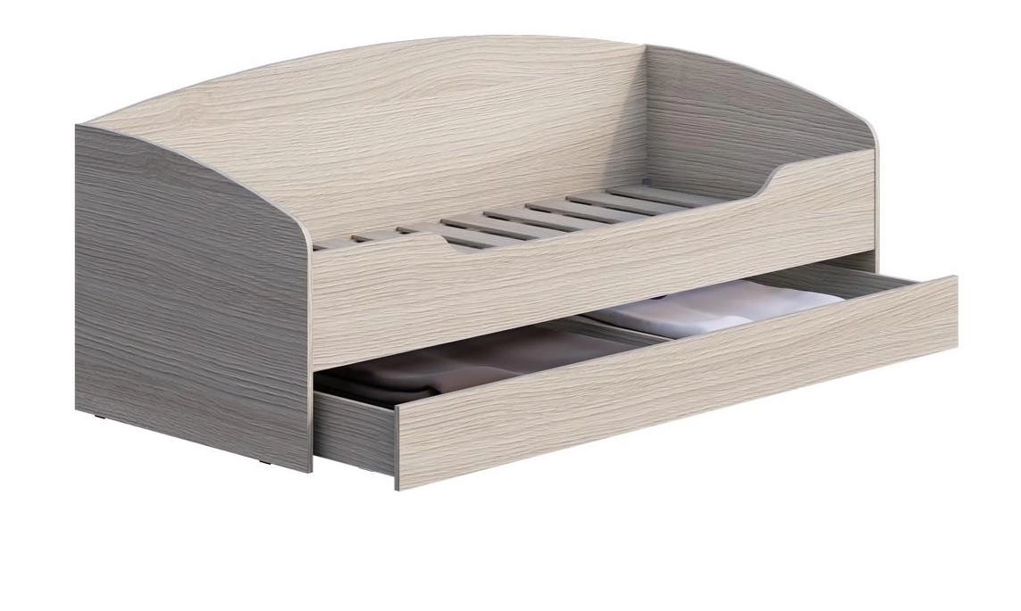 - Кровать оснащена выкатным ящиком на колесных опорах. Ящик разделен перегородкой на две секции.