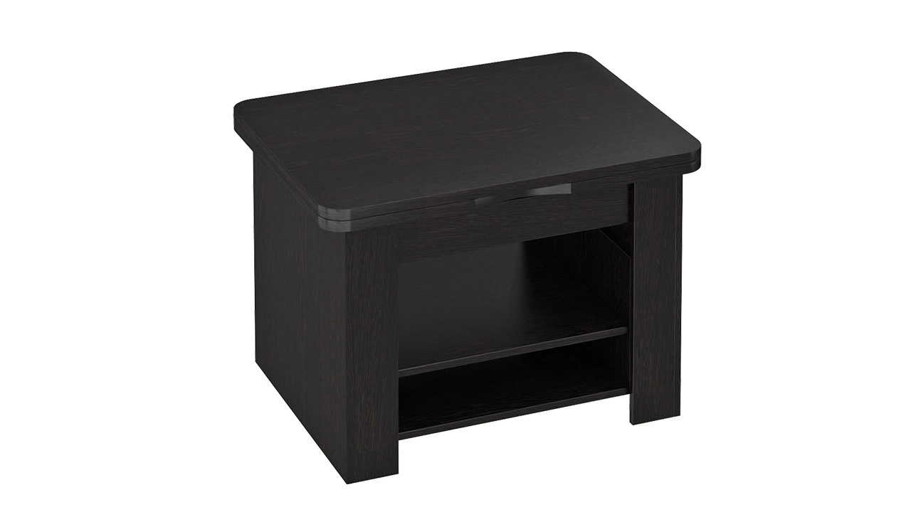 Компактная многофункциональная модель способна обеспечить удобство в самых разных ситуациях: журнальный стол-трансформер можно использовать по прямому назначению — для дополнения мягкого гарнитура, как письменный или компьютерный стол, а также в качестве тумбы для хранения различных вещей. Прочная конструкция трансформирующих механизмов и отличное качество материалов гарантируют долгий срок службы, а стильный дизайн — эстетичность интерьера комнаты. Длина стола в разложенном виде-1200 мм. Габаритная высота в разложенном виде - 750 мм.