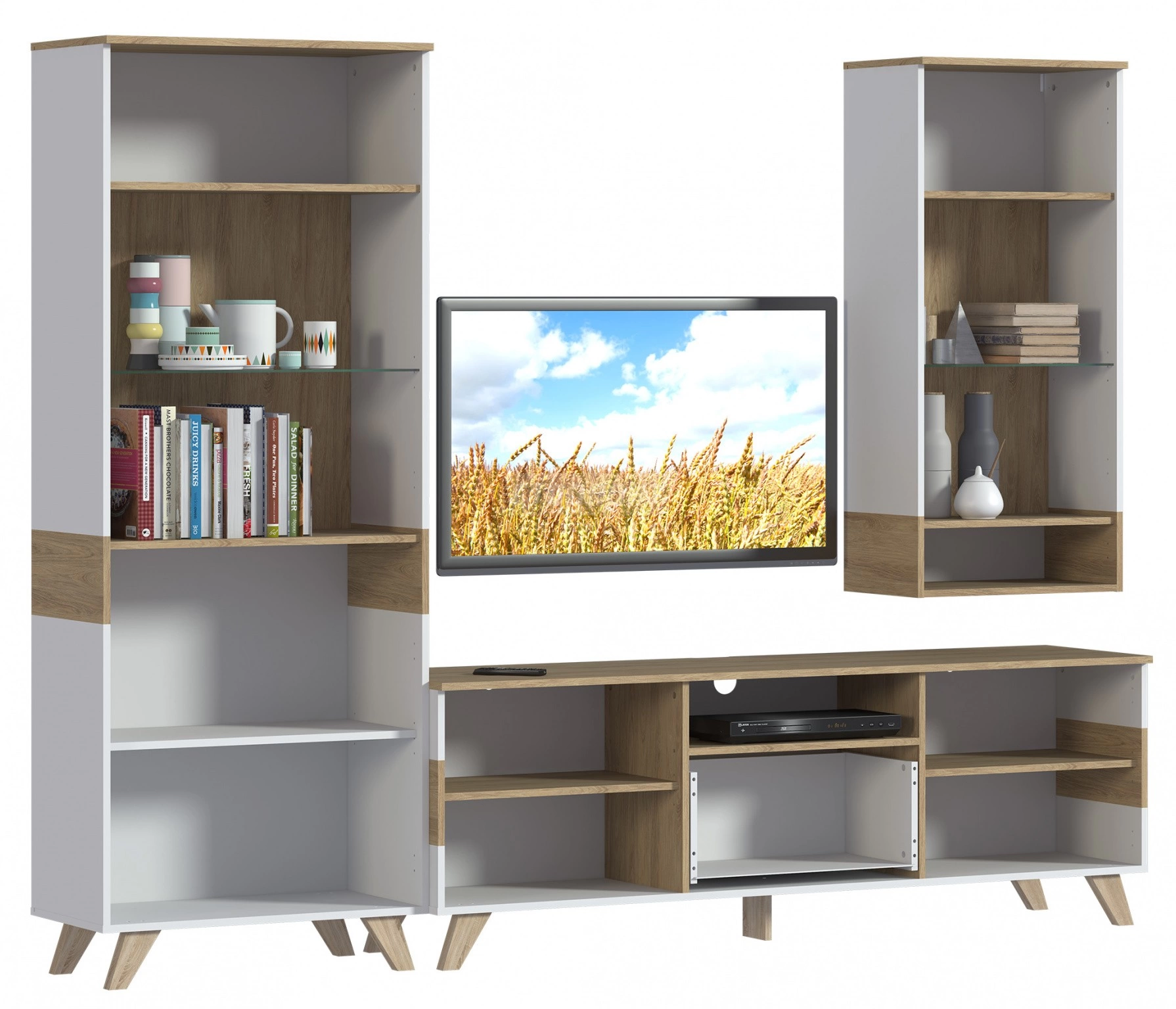 FINN СБ-2909/1 Витрина Гикори натуральный,Белый/Дуб светлый,БелыйFINN СБ-2910/1 Тумба Гикори натуральный,Белый/Дуб светлый,Белый