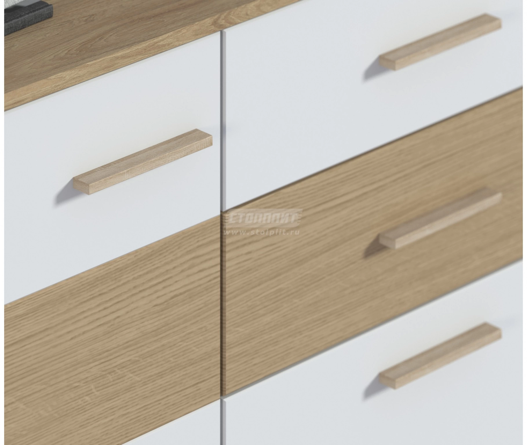 Материал: корпус ЛДСП ламинированная белая/гикори нат., фасад МДФ дуб светлый/белый