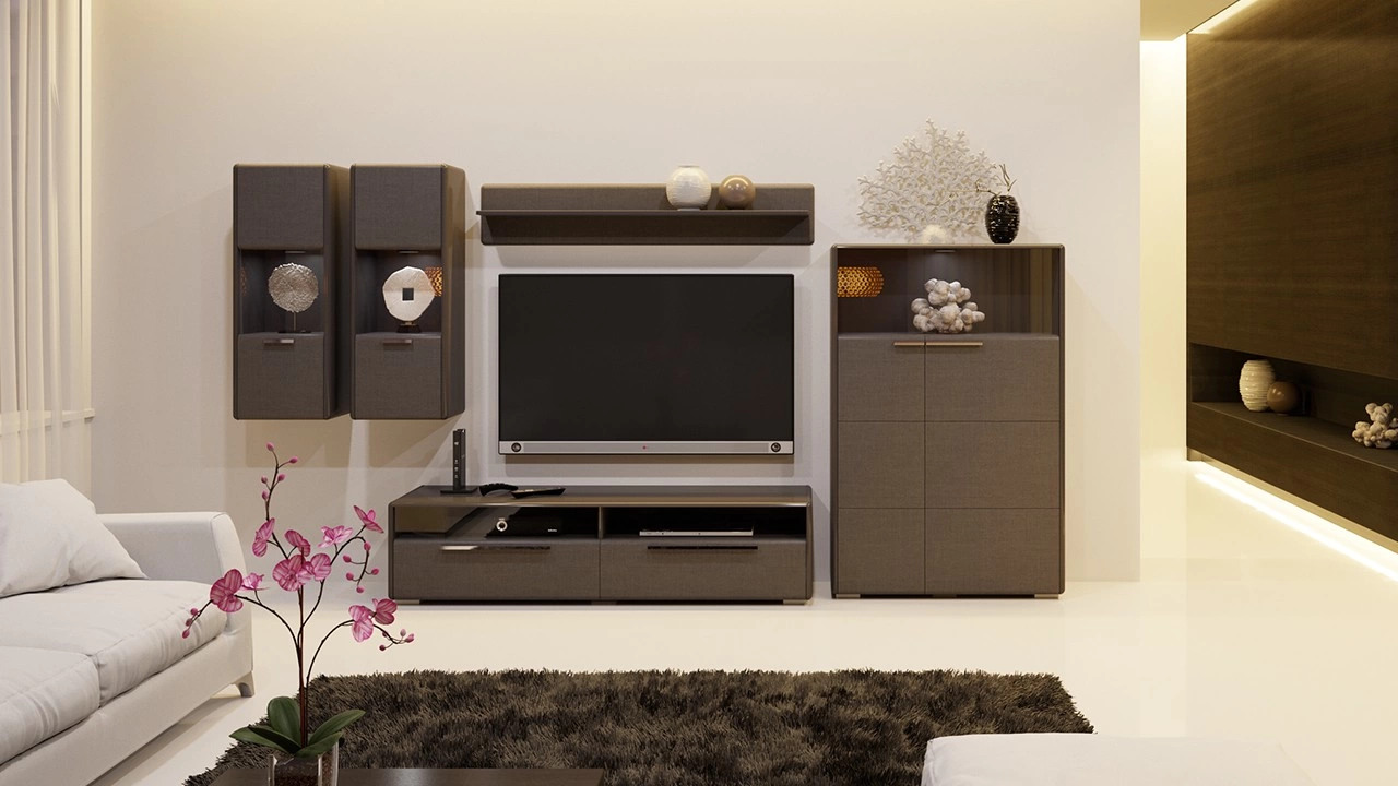 - Габариты Тумбы ТВ: Ширина -1544 × Высота -382 × Глубина-440 мм