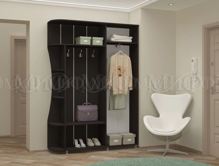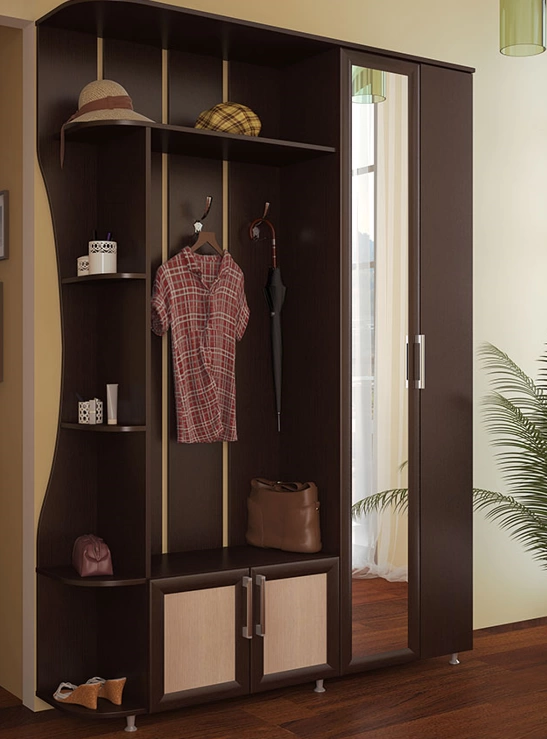 Модульная прихожая в коридор для малогабаритных квартир. Имеет компактные размеры и приятный дизайн. Зеркальная створка зрительно сделает шире узкую прихожую.