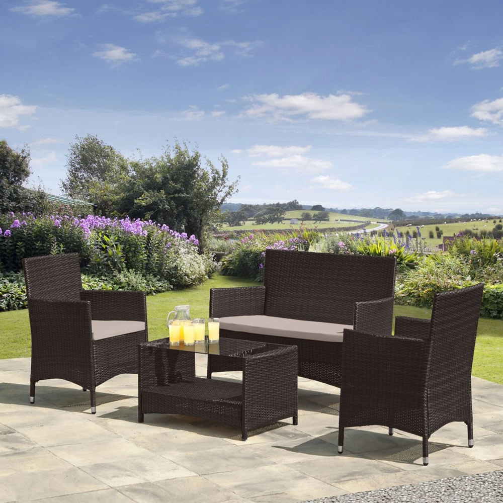 Стекло: закаленное-5мм. Каркас: сталь. Материал: искусственный ротанг. Цвет: Black. Подушки в комплекте5см). Вес - 35 кг.