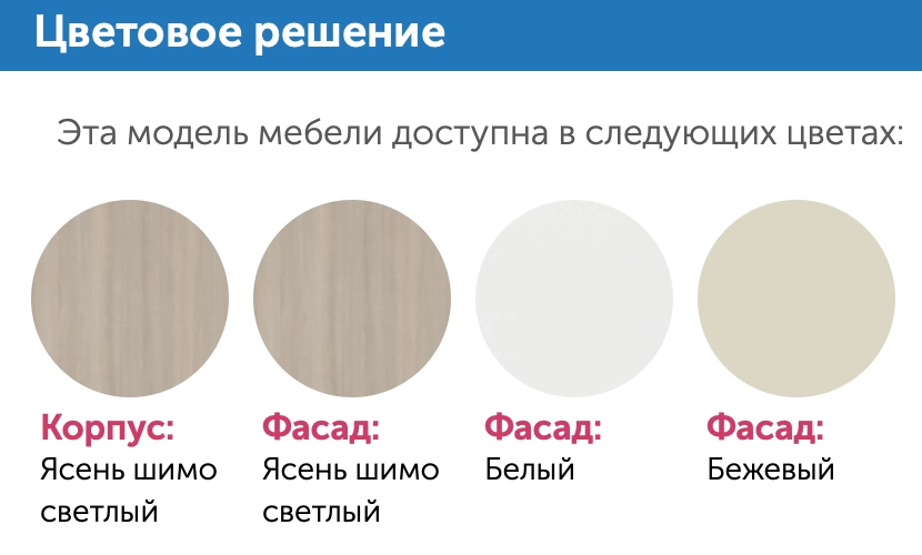 - Цвет фасада: Ясень Шимо Светлый/Белый Фотопечать/Бежевый Фотопечать