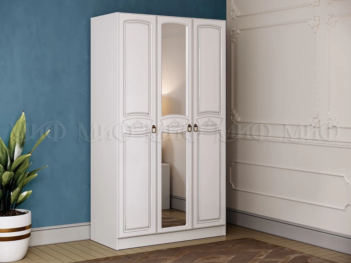Шикарный, белый шкаф "Алекс" не только красивый, но и многофункциональный, так как внутреннее наполнение с полками и штангой.
