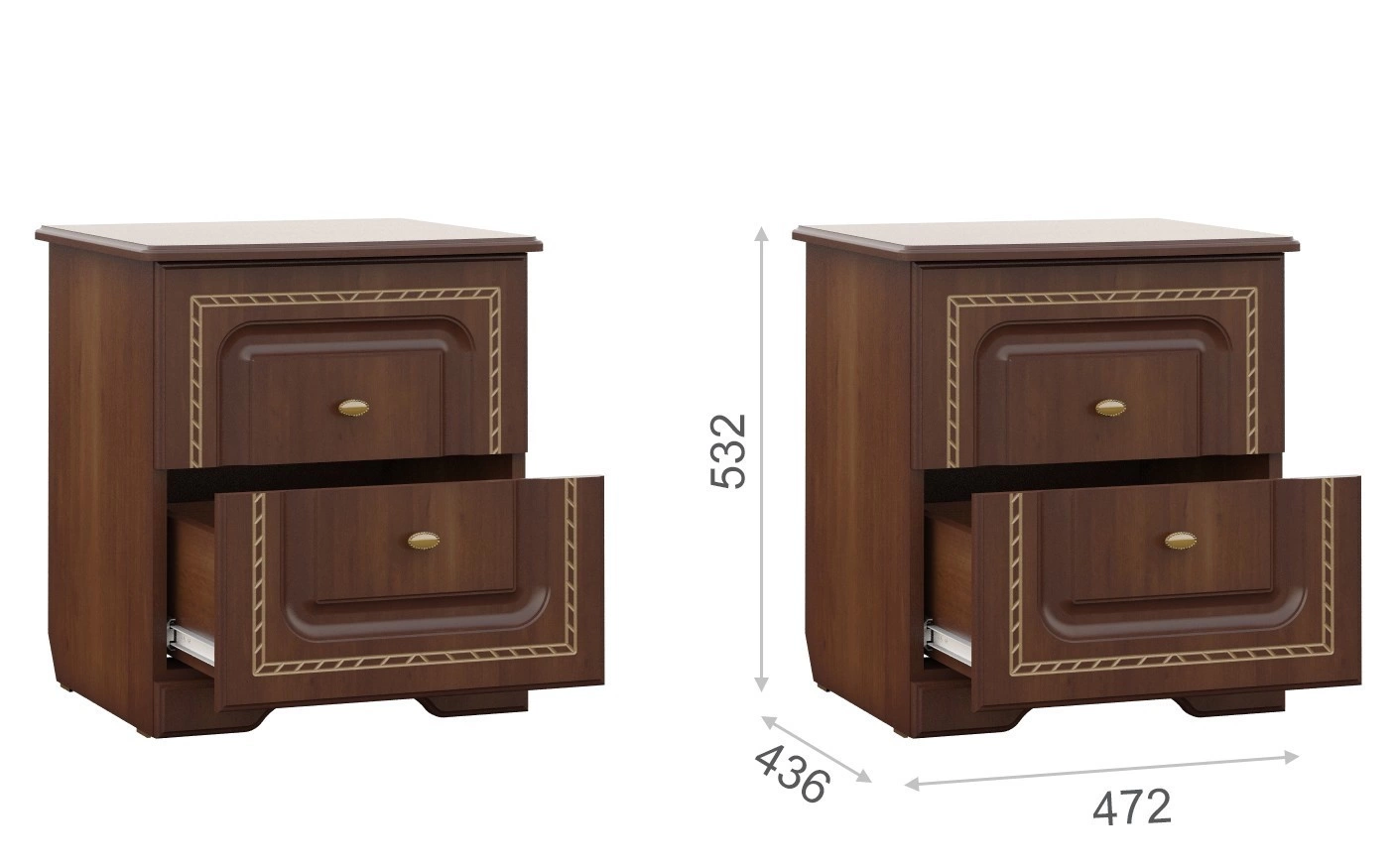 - Тумба Прикроватная: Ширина 472 мм х Глубина 436 мм x Высота 532 мм - 2шт