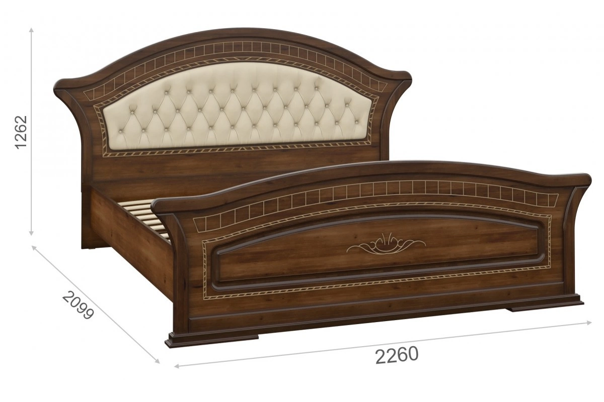 - Кровать: Ширина 2460/2260 мм х Глубина 2099 мм x Высота 1262 мм/ Спальное место 1600 x 2000мм или 1800 x 2000мм)