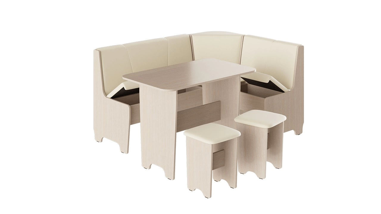 - Обеденная зона "Техас" состоит из удобной угловой скамьи, практичного стола и компактных табуретов.